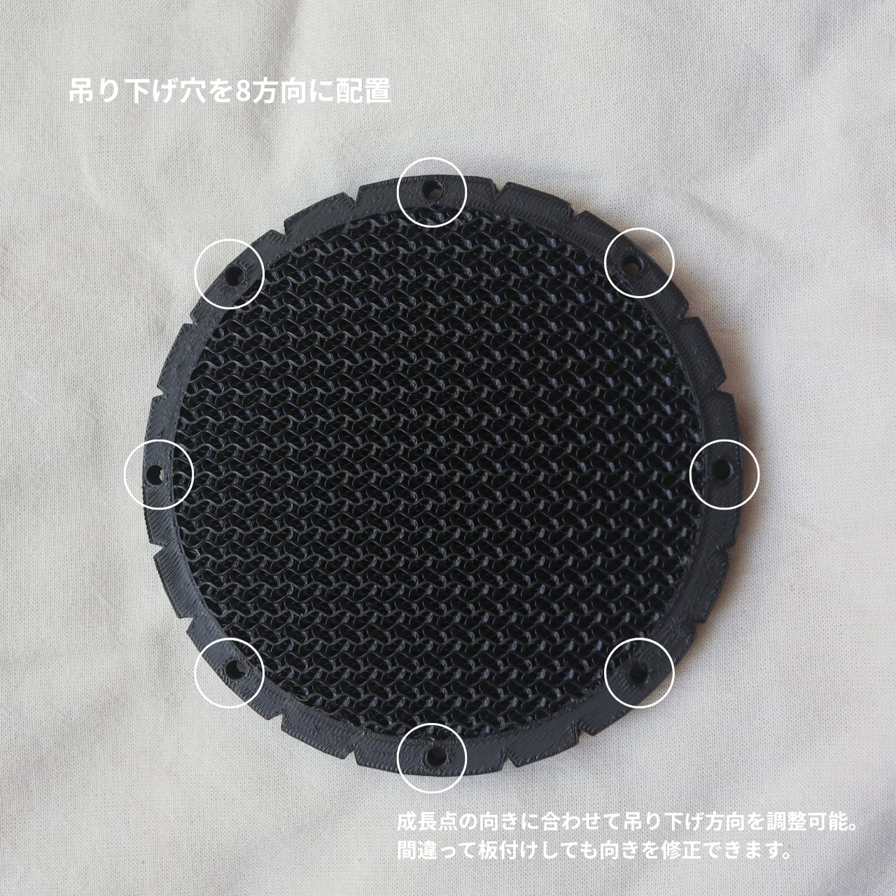 ・直径3.6mmの吊り下げ穴を8方向に配置