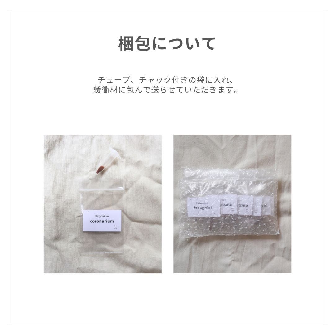 各胞子はチューブに入れ、チャック付きの袋で丁寧に梱包して発送いたします。配送中の破損を防ぎ、安心してお受け取りいただけます。
